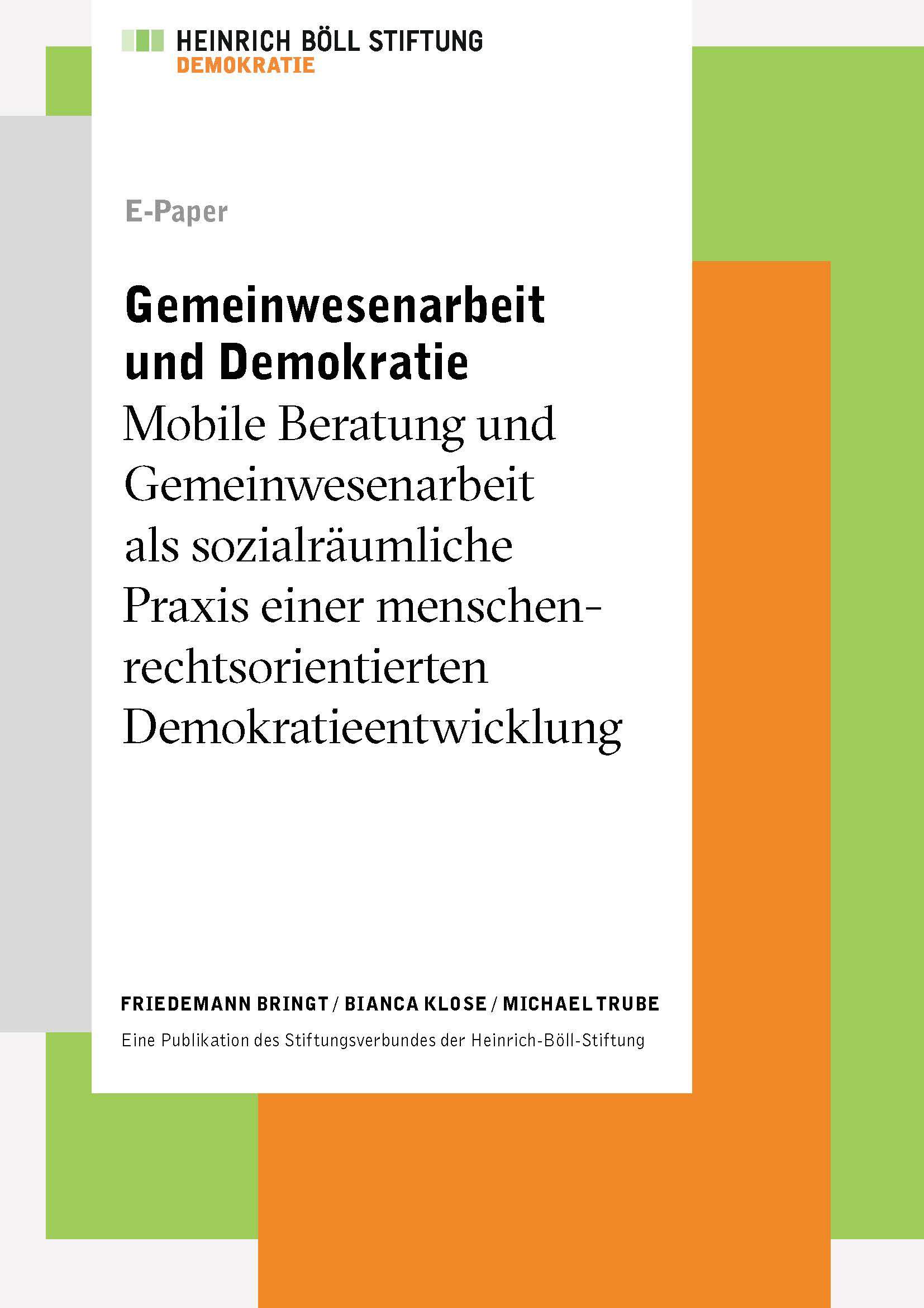 Gemeinwesenarbeit und Demokratie. Mobile Beratung und Gemeinwesenarbeit als sozialräumliche Praxis einer menschenrechtsorientierten Demokratieentwicklung (2014); Hg.: Heinrich-Böll-Stiftung.