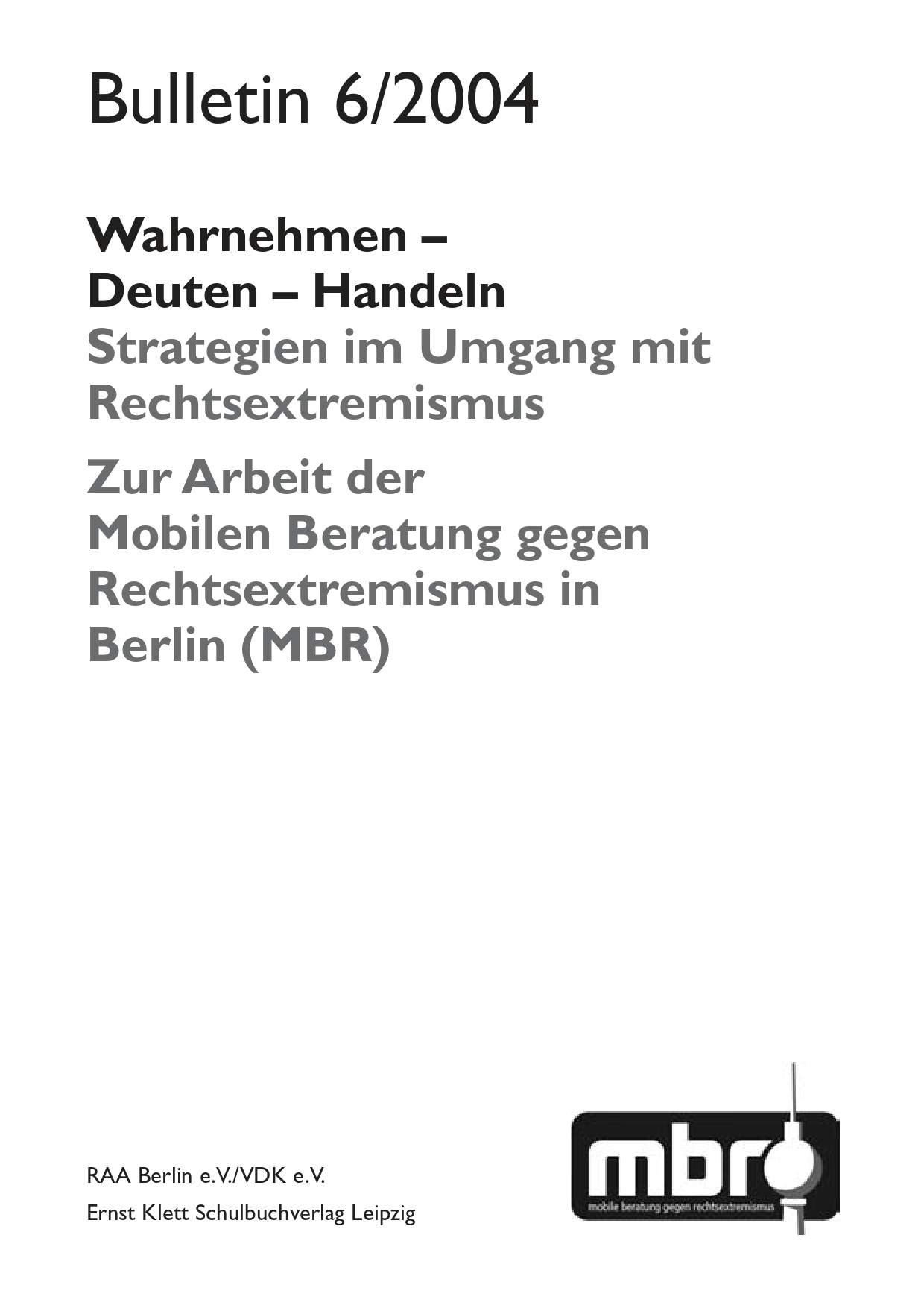 Wahrnehmen – Deuten – Handeln: Strategien im Umgang mit Rechtsextremismus (2004); 96 Seiten; Hg.: RAA Berlin e.V./VDK e.V.